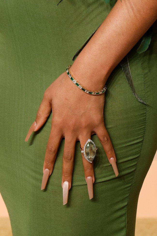 Lipstick nails are simply diagonal nails that resemble the shape of a bullet lipstick. While some wearers opt for a single lipstick nail as an accent, they’re typically worn as a full set. As for the design, it’s completely up to the wearer to decide what look to pair with their lipstick nails. Just like other shapes, you can go for something simple and subdued, or you can match the over-the-top vibe and opt for a louder design. No matter what you decide, lipstick nails are a truly eye-catching trend that’s perfect for anyone growing bored of the usual nail shapes. And if you’re still not convinced that lipstick nails are the cool girl shape, take it from Megan Thee Stallion’s countless lipstick nail looks.