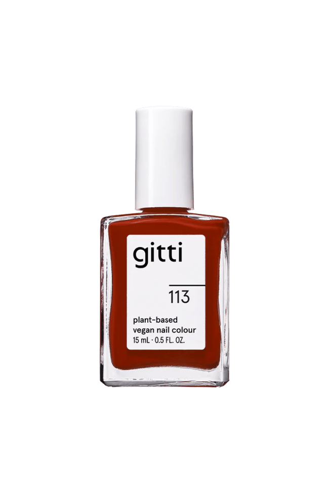 Or, maybe you’re really feeling the fall vibes even though it’s pretty warm still across the country. Go for reds and dark reds, Truong says, like Gitti no. 113 Rust Red.