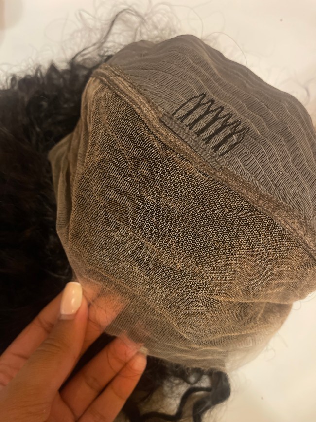 The cap design of this wig follows a more traditional style, featuring a full frontal lace with the middle to the back of the wig weft onto a cap. Inside, there are four combs, one sewn-in elastic, and two traditional small strap elastic bands positioned at the base of the wig. The inclusion of two elastic bands in this unit contributes to a snugger fit compared to the first wig, enhancing the overall sense of security.