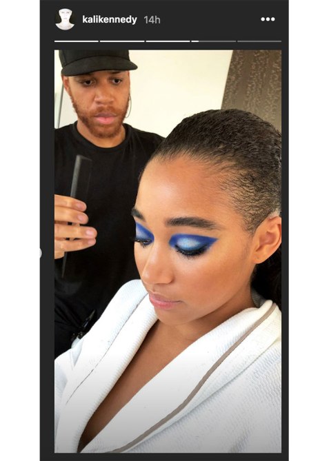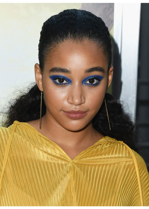 Bobby pins have been hairstylists go-to tool for added dimension this summer and we’re all about Francois’ take with abnormally large ones. We’d also be remiss to neglect Stenberg’s incredible makeup, too, which is accredited to Kali Kennedy (who frequently does makeup when Francois is on hair). For last night’s look, Kennedy created a blue smokey eye, but left the center shimmery and light.