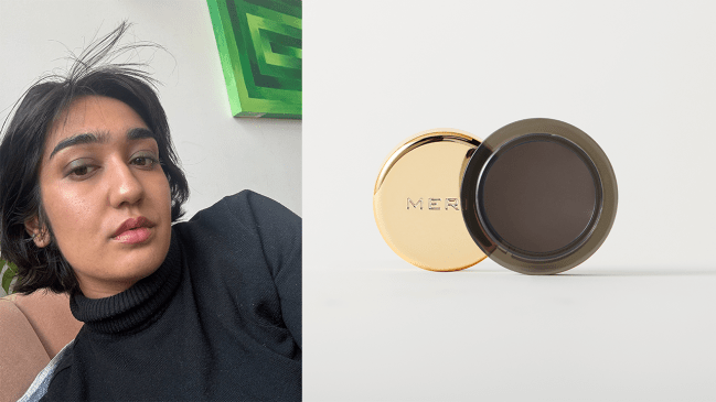 “You’ll notice a recurring theme of me opting for minimal makeup. What can I say, I’m a firm believer in less is more! The Solo Shadow, one of Merit’s newer additions, is a staple for achieving a minimal makeup look. I don’t need a bulky eyeshadow palette, I just need one to three max of the Solo Shadows. The tiny pots of cream-to-powder shadow last forever—I’ve used mine so much but have yet to put a dent in it. I love a matte eye look that only requires one or two shades that you can messily swipe onto your lids (using Brush No. 2, of course). That’s literally all I do when I’m applying more than just mascara on my eyes. Midcentury is a warm brown tone, the perfect neutral base shadow for my lighter skin tone. If I’m feeling a little extra, I’ll add a bit more dimension with the shade, Social. I was intimidated when I first realized the shadow is a soft mauve color, but as soon as I tried it on, I was surprised at how subtle it appears on the lids. It’s a lot more manageable and natural-looking than you’d expect, but if you want a bolder look, keep packing on more layers. The Solo Shadow is buildable, but be careful because it sets pretty quickly, so you don’t get as much playtime. Also important to note, I have oily skin and therefore oily lids, but fortunately, this product doesn’t crease or budge throughout a day of wear.” — Katie Decker-Jacoby, Associate E-commerce Editor