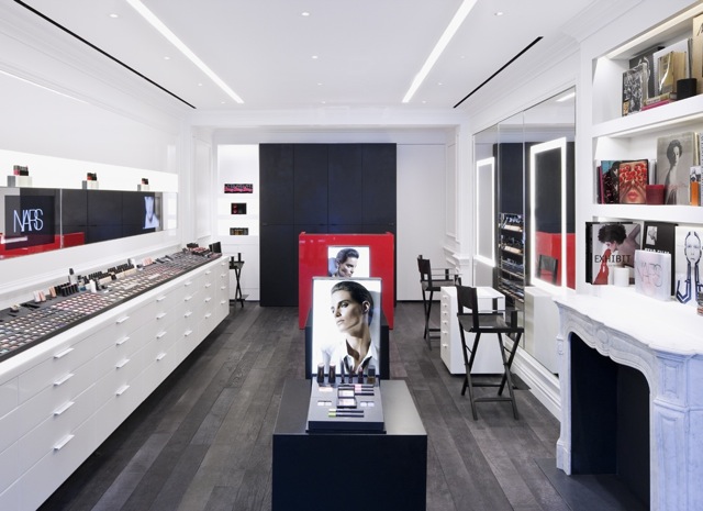 Francois Nars collaborated with Fabien Baron of Baron & Baron, a longtime friend, on the boutique’s design. The black and white color scheme screams of NARS’ signature packaging, with red accents for NARS’ bold lip colors. The store also offers exclusive products such as a larger Bento Box and a new hue of the Pure Matte Lipstick, appropriately named 413 Bleecker. When asked why Nars chose the now almost iconic location he replied, I love Bleecker Street, its a cool fun area with great shopping, said Nars. The boutique is very intimate and chic, and the exterior is very old West Village, which is nice. The Bleecker Street storefronts are extremely charming.