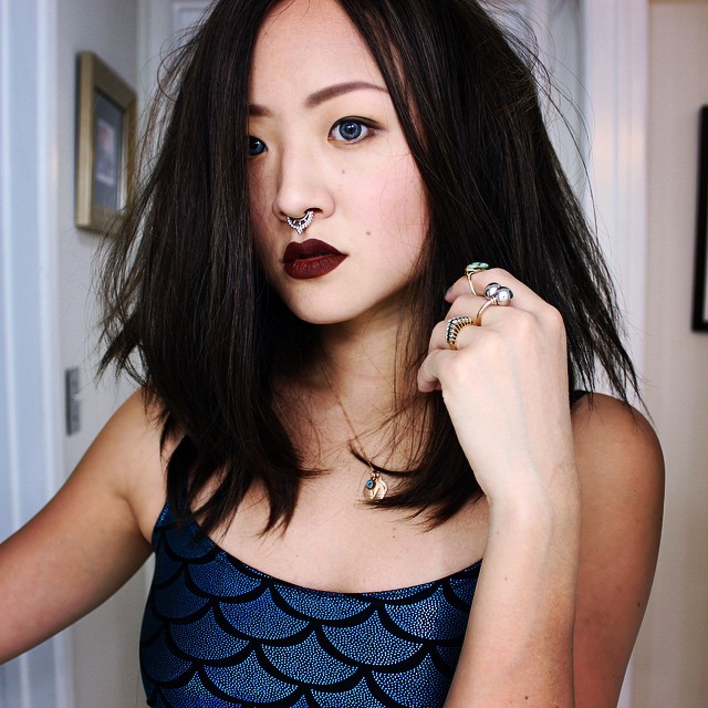 With blacked out lips paired with this maroon wing, we think this girl is totally killing the badass game.