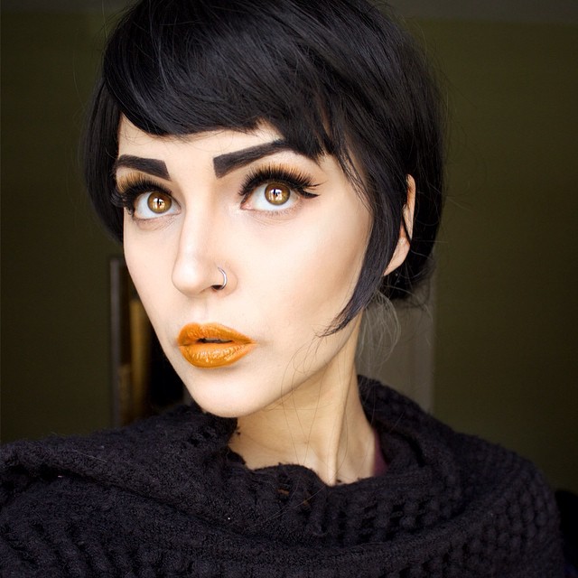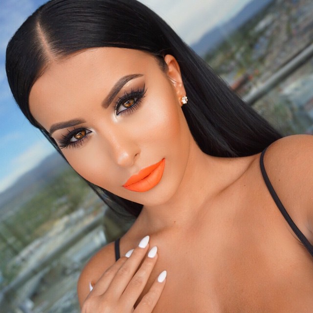 The orange of this Instagrammer’s lip color totally makes her eyes pop! Plus, she highlighted with a soft orange color too, helping to accentuate the effect.