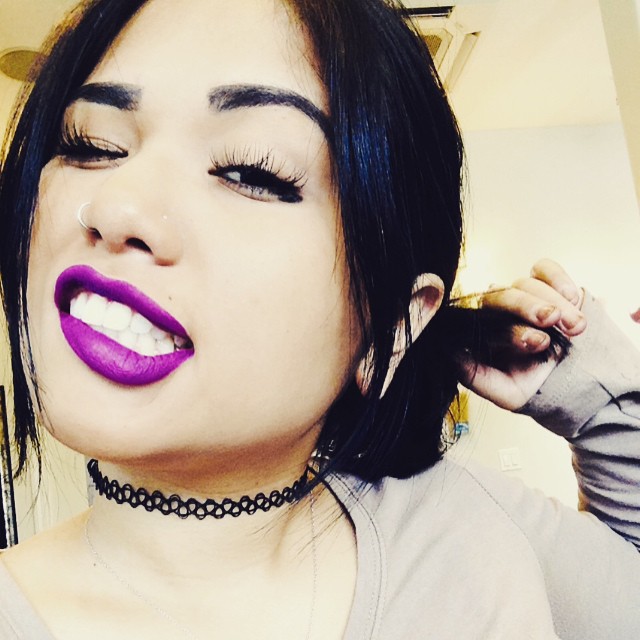 This Kat Von D lip stain, “L.U.V” is the perfect pop of purple for anyone’s skin tone! Also, can we just talk about those lashes for a minute?!?