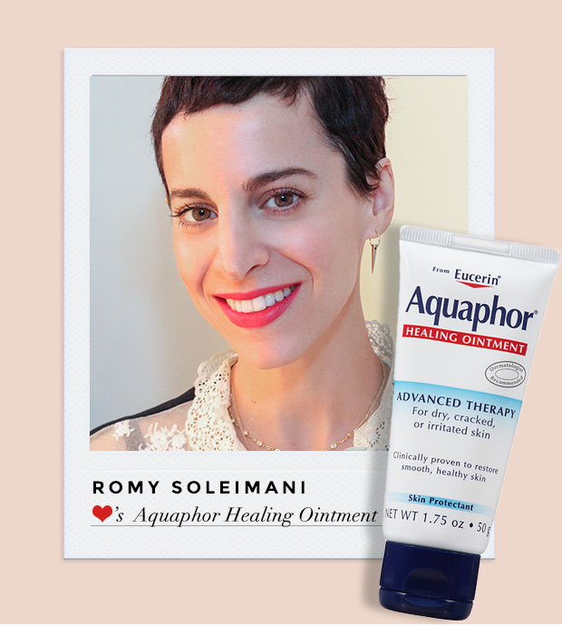 “Aquaphor. A classic, staple product for healing severely dry and cracked lips in a hurry. Lots of models have very dry lips due to the heavy amount of travel their job requires, and my job is to make it so that no one would ever know that. This product is basically like a magic wand that repairs on the spot, but I especially like to apply it at the start of the makeup, so that it soaks in to the lips while I prep the skin or tend to other areas of the face.”