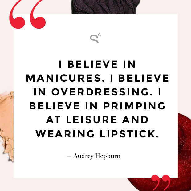 “I believe in manicures. I believe in overdressing. I believe in primping at leisure and wearing lipstick.” — Audrey Hepburn