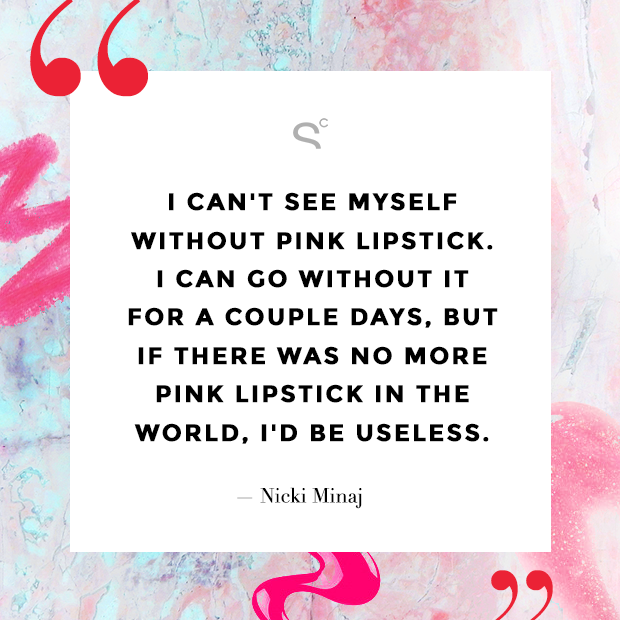 “I can’t see myself without pink lipstick. I can go without it for a couple days, but if there was no more pink lipstick in the world, I’d be useless.” – Nicki Minaj