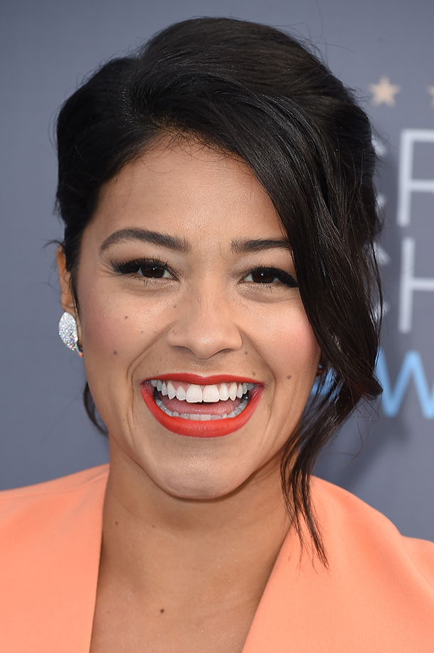 Kudos to Gina Rodriguez for this scarlet red matte lipstick shade, which went surprisingly well with her coral evening gown. We know it’s January, but this look is giving us some serious summer beauty inspiration.