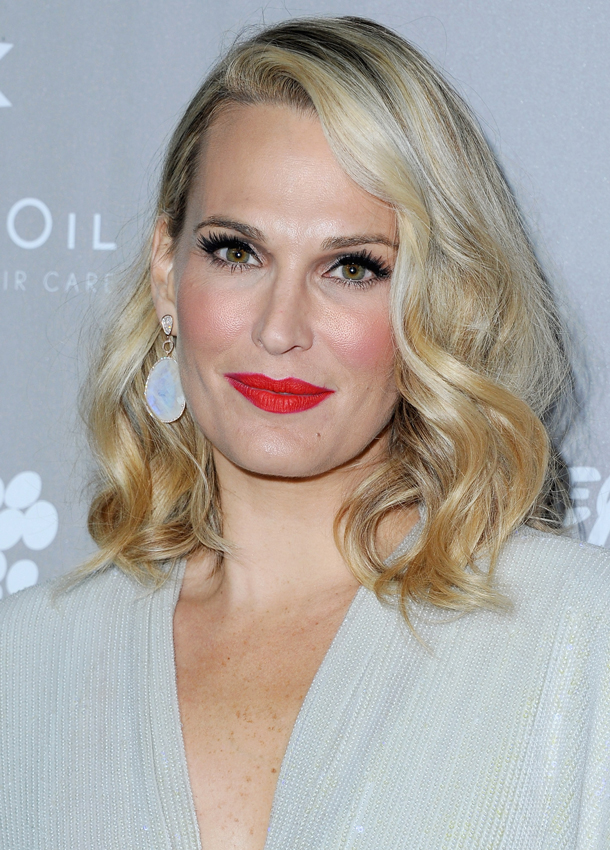 Molly Sims went for a more noticeable set of lashes with crimson lipstick and pink blush. Talk about a winter princess!