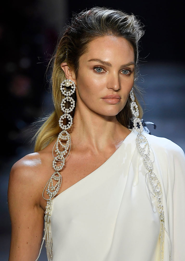 Mane genius Justine Marjan is responsible for this bejeweled chain ponytail that we are definitely going to spend however long it takes trying to replicate.