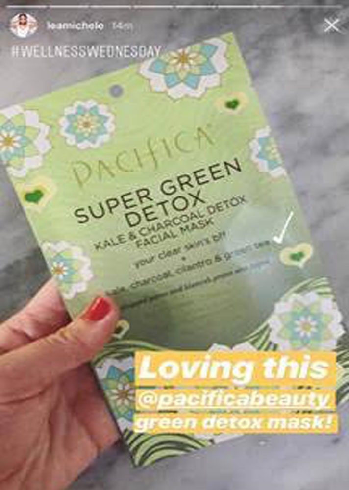 “Loving this @pacificabeauty green detox mask!,” she wrote on Instagram Stories.