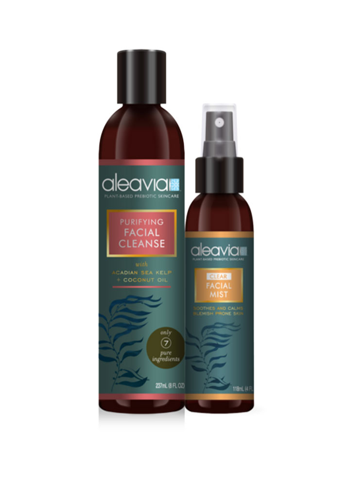 This set includes the Aleavia Purifying Facial Cleanse and the Aleavia Clear Facial Mist, both of which are fragrance-free and formulated for acne-prone skin.