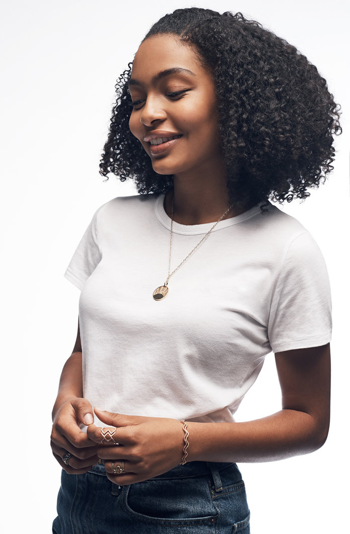 Talking with us about the new campaign, Shahidi divulged that her parents are to thank for helping her feel comfortable in her own skin—both as a teen and as an actress: “Having my parents emphasize how important it is to be true to who I am, and having them love how much I love my natural curls, means a lot,” she says. This self-assuredness translates to her beauty approach, too. Growing up on the red carpet, Shahidi has already mastered the art of minimalist hair and makeup and sticks with simple, natural-looking cosmetics, paired with bouncy curls, side-swept chignons, and box braids. Basically, all of our favorite things and more.