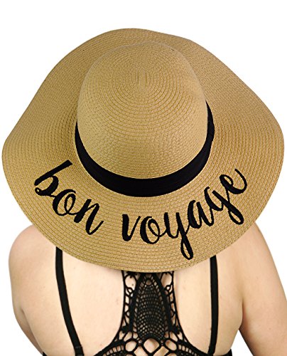 This breezy straw hat comes with luxe text and quotes embroidering for a personalized touch. Popular phrases choice include “bon voyage,” “good vibes,” and “hello weekend.”
