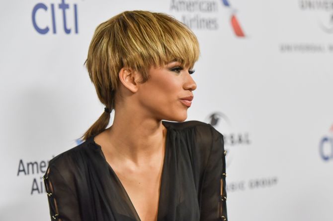 Zendaya opted for a tiny ponytail at one point.