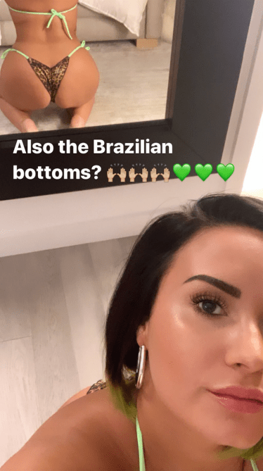 Demi is wearing a tiny bikini in the photo. It’s the same one that she wore for another front-facing selfie on her Instagram a few days ago. It’s teeny-tiny, so the butt selfie is very, er, cheeky.