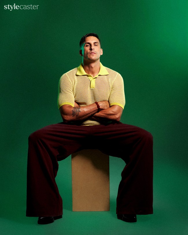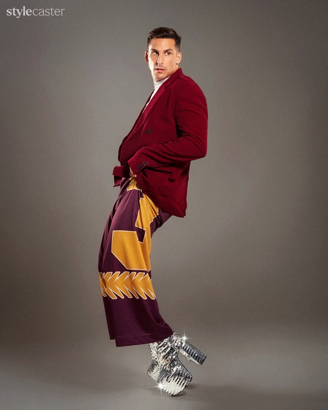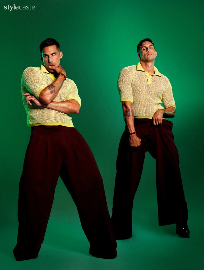 Cody Rigsby understood the assignment: lose the workout gear and have fun. On the set of his StyleCaster cover shoot in late August, Rigsby seamlessly slips in and out of designer clothes—a little Dries Van Noten here, a Bottega Veneta moment there—with the ease of a star who’s taken center stage for years, soaking in the supportive hoots and hollers of his team nearby as Britney Spears’ “Stronger” pulses in the background. “Hush, just stop,” the song crescendos. He freezes, balancing his statuesque frame on his tippy-toes while wearing sky-high SYRO disco platforms and a glittery Lucas Stowe tank. “OK, Cody! Who gave you permission?” I think to myself. Linda, Cindy, Christy, and Naomi would certainly be proud.