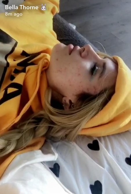 However, body hair wasn’t the only thing Thorne was keeping au naturel in her snap. The actress, who revealed on Instagram that she’s currently battling a cold and an acne breakout, sported minimal makeup in the clip as she rolled around on the couch with her pimples (which she called “on fleek”—and we agree) on full display.