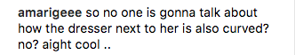 If you look closely, the edge of the dresser in the background by Hadid’s hip is curved. This led many fans to believe that the model photoshopped the picture to make her hips look bigger and her waist more slender. Afte noticing the detail, fans flooded Hadid’s Instagram with FaceTune accusations. Some slammed her for editing her body, while others expressed their disappointment in knowing that someone as beautiful as Hadid also photoshopped her pictures.