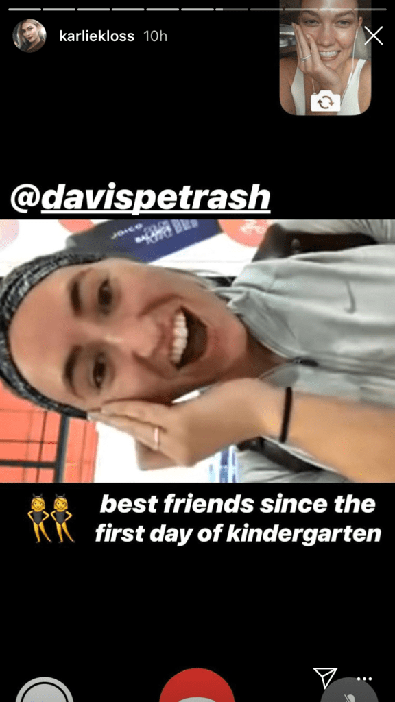 On Tuesday, the 25-year-old model announced her engagement to businessman Joshua Kushner (brother to Jared Kushner and brother-in-law to Ivanka Trump.) To keep the happy theme going, Kloss also shared screenshots from FaceTime calls with several of her celebrity friends to let them know that she was engaged. “One of the best parts 💍💍💍💍…” Kloss wrote on a slide on her Instagram story before sharing screenshots from her FaceTime calls with celebrities, such as Serena Williams and Princess Beatrice. (Side note: Kloss also exposed Princess Beatrice’s secret Instagram—it’s against tradition for royals to have social media—so it was an eventful day.)