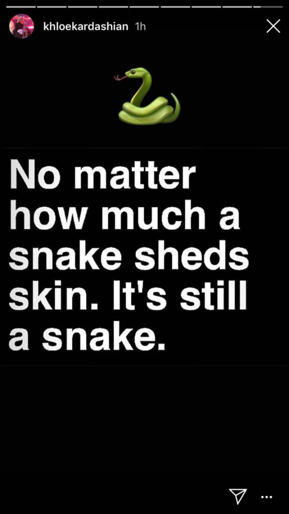 “People reveal themselves through their action,” the quote read. “No matter how much a snake sheds skin. It’s still a snake.” Kardashian accompanied the quote with a snake emoji.