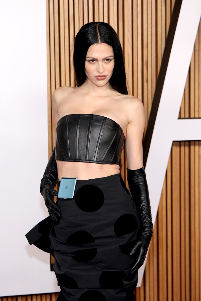 Outside of fashion month and magazine spreads, she’s also made a name for herself thanks to her uniquely Y2K-inspired way of dressing. From Matrix-esque futuristic fits to looks that channel peak Hollywood socialite vibes (think: vintage Louis Vuitton x Murakami bags, baby doll tees, and transparent shield sunglasses), Amelia’s style is like opening a fun 2000s fashion vault. Just this week, she turned heads in a nipple-baring, see-through Azzedine Alaïa dress at the 2023 CFDA Awards and in an all-black leather look at Glamour‘s Women of the Year awards. So it’s no surprise she partnered with Motorola to spotlight the Razr+, arguably one of the most iconic and stylish phones from the aughts.