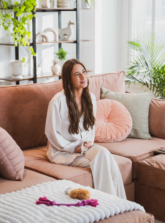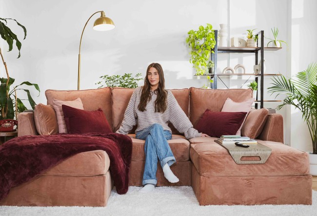Amanda is the spokesperson for Lovesac’s new [Sit]utionship campaign, which promotes the idea of investing in furniture (and relationships) that will last for years to come. “This one’s all about situationships, if you get the play on words there. It’s about not being with something that’s not going to last, whether that’s a person or a couch. It’s about committing to something that’s going to be with you for the long haul,” she says. “The sectionals, they’re interchangeable. You can size down, size up, they can grow with you, especially living in New York City apartments, having a couch that you can downsize or add on to is great. My favorite part of the whole thing is the washable covers. Especially having pets, that has been a game changer.”