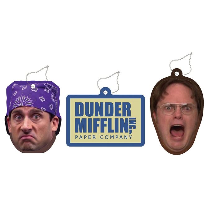 Want passengers to crack up the moment they take a seat in your car? Look no further than this Prison Mike, Dwight and Dunder Mifflin Paper Co. car freshener set.