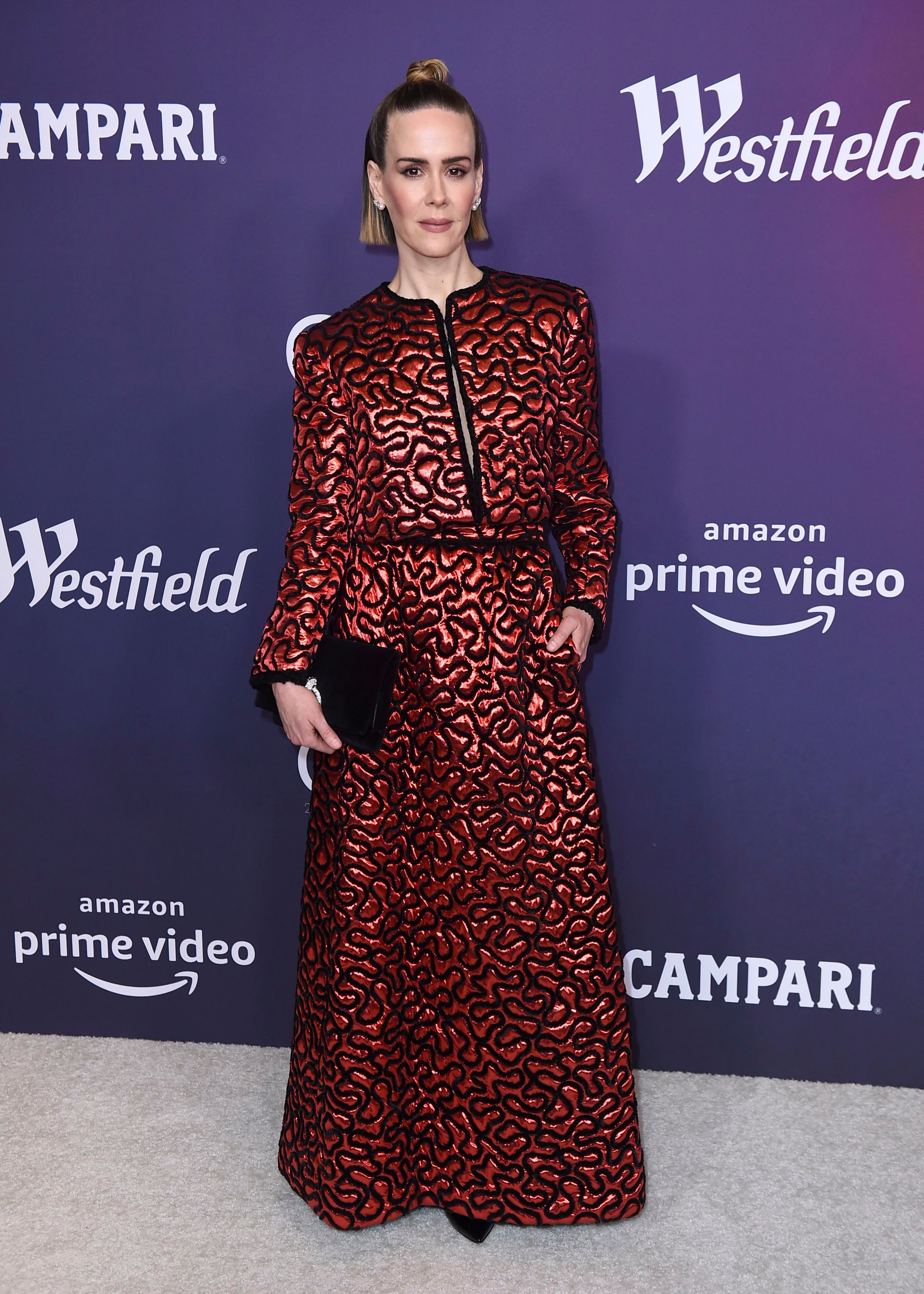 Paulson arrived at the 2019 Costume Designers Guild Awards on Tuesday night dressed to the nines—per usual. The actress donned a 1980s Chanel skirt and jacket set that gives me both Keith Haring and futuristic space babe vibes. The lurex and chenille cord skirt and jacket combo was the perfect ensemble for an event honoring costume designers, since the ensemble itself seemed a bit costume-inspired. I mean, the pattern on both the skirt and jacket is something I could stare at forever—continuously entranced by all the squiggles. This metallic gown may be one of Paulson’s trippiest ensembles yet.