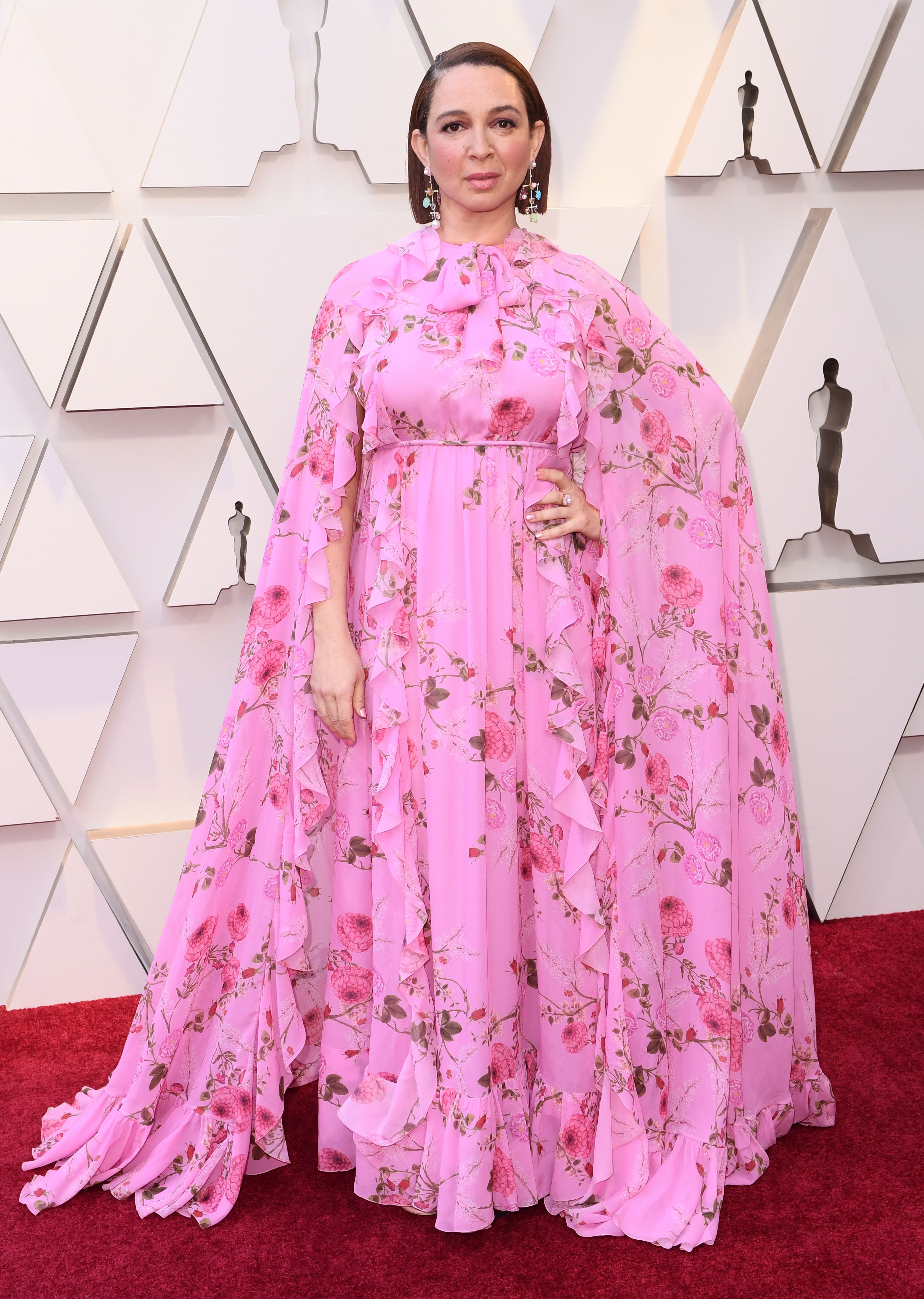 Maya Rudolph rocked an incredible pink floral gown on the Oscars red carpet.