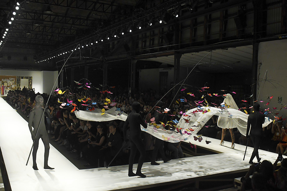 And flowing behind her were clouds of colorful butterflies, suspended on several mobiles and supported by figures dressed in black—much like the Kuroko, or stagehands, do in the form of traditional Japanese theater known as Kabuki.