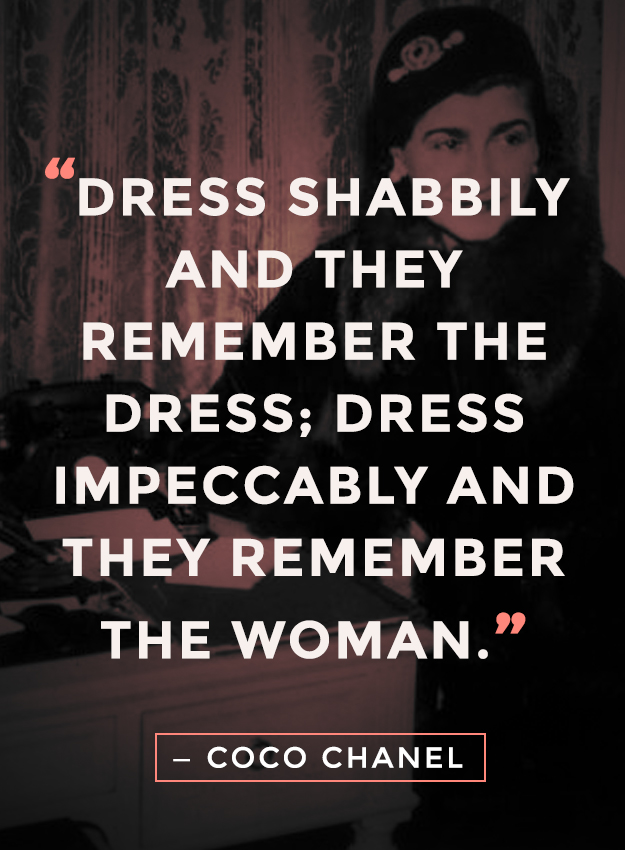 6. “Dress shabbily and they remember the dress; dress impeccably and they remember the woman.”
