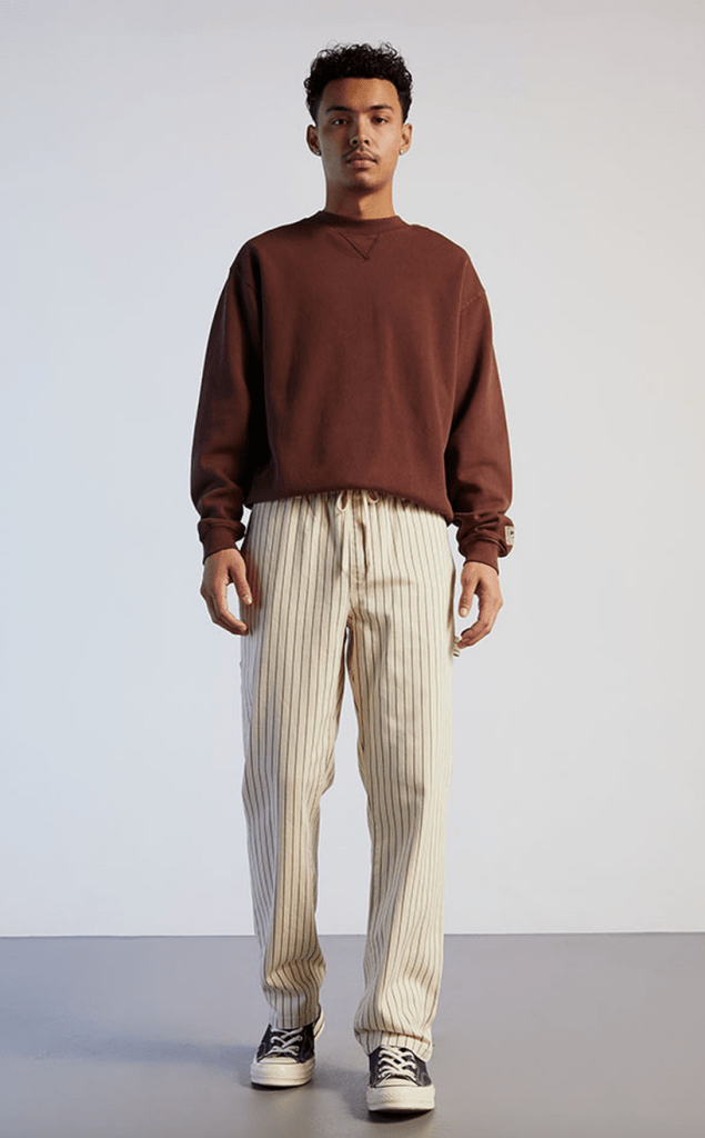 A striped pair of pants look great during the summer but work all year long. I love the carpenter-style cut of this pair.