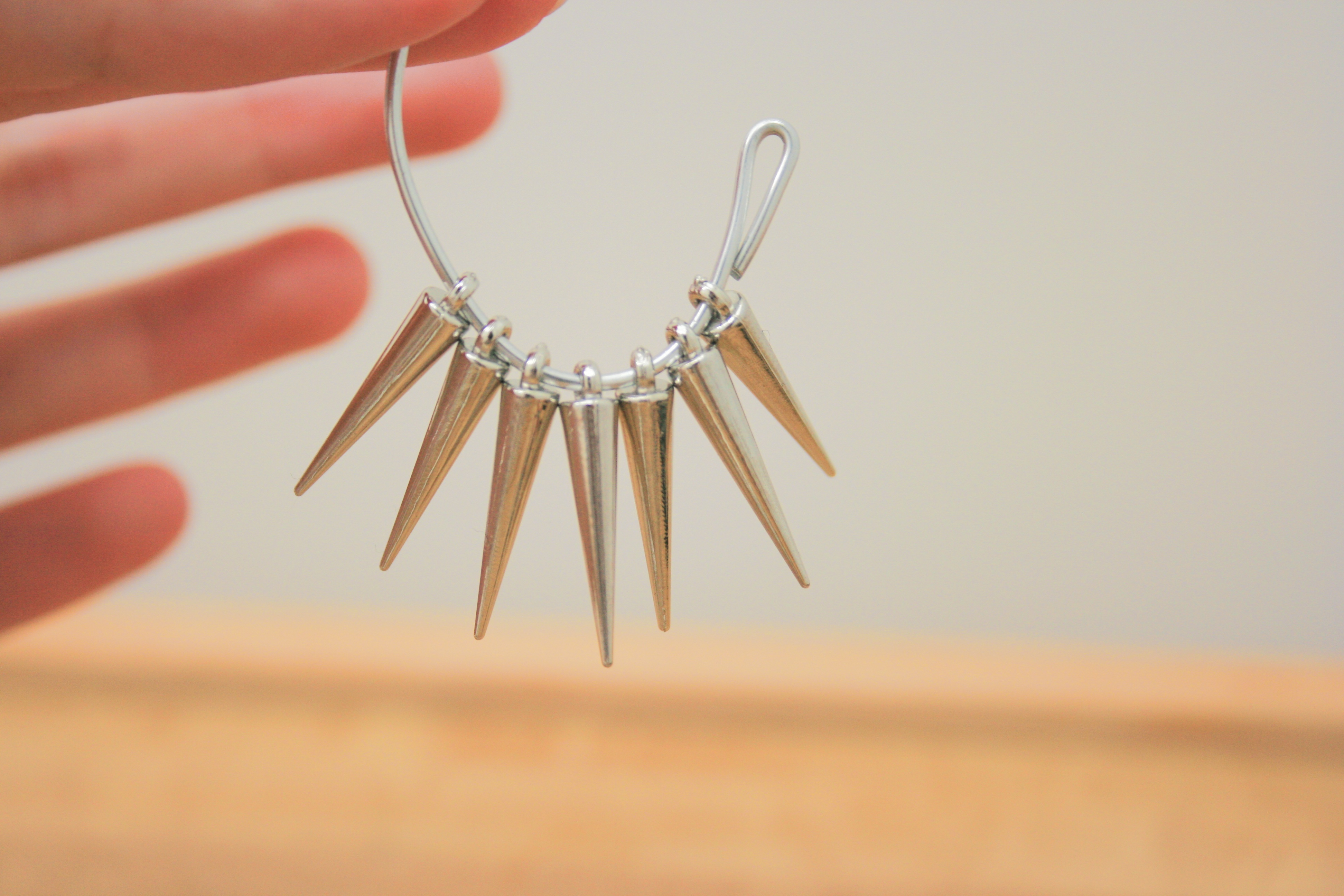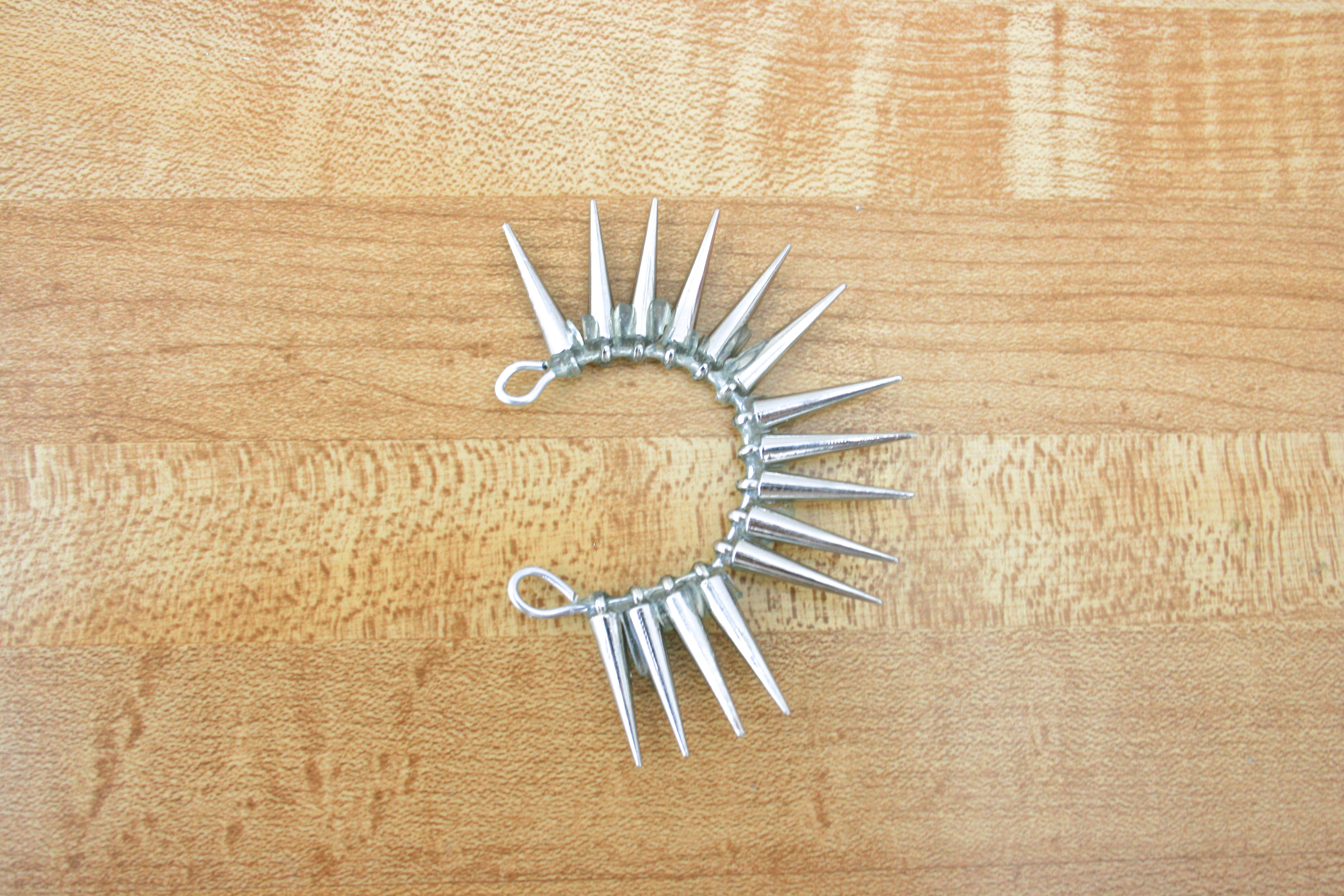 Step 5: Working quickly so that the epoxy doesn’t dry, use the pencil tip to apply dots of epoxy in between each spike bead so that they stick together. Let dry overnight.