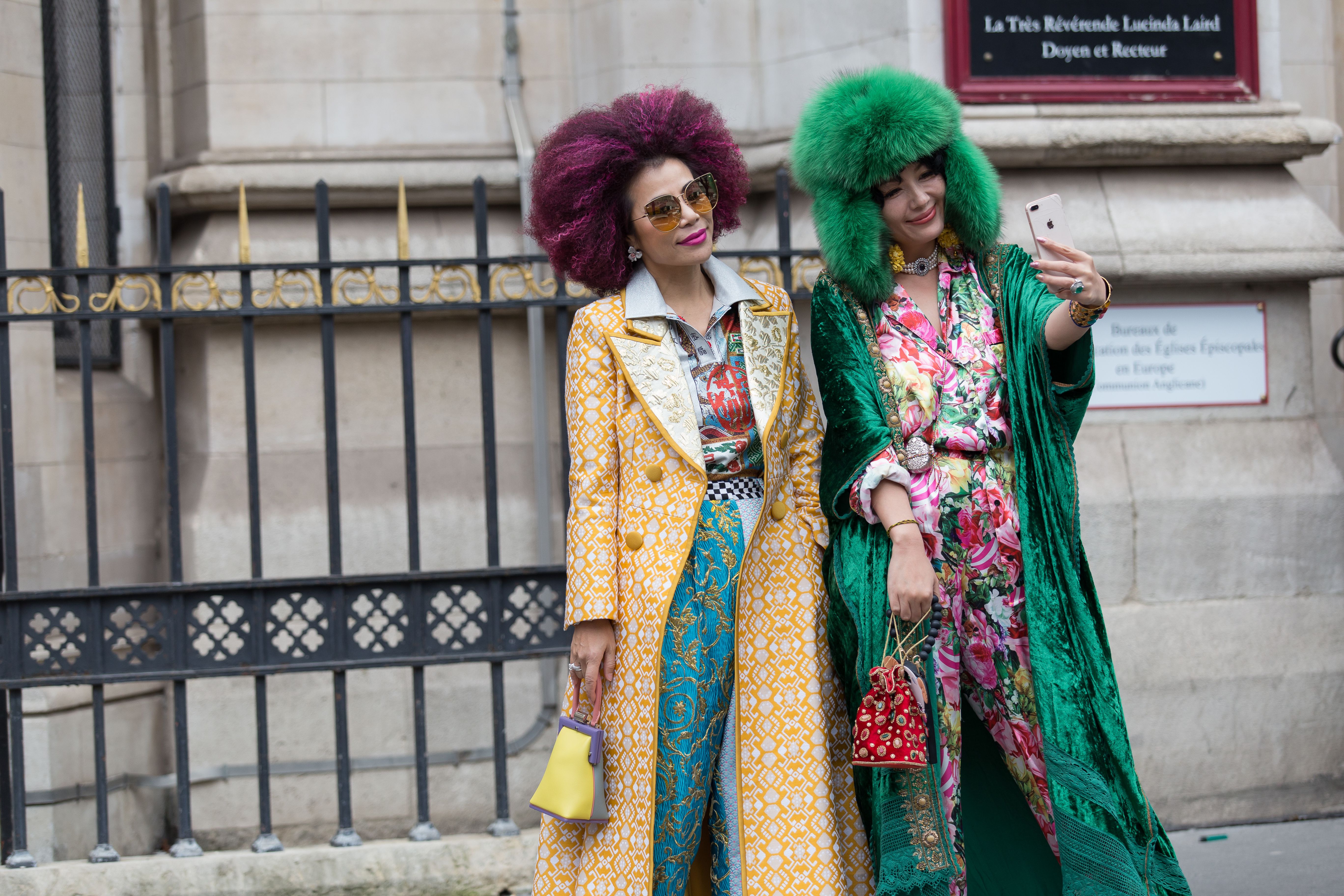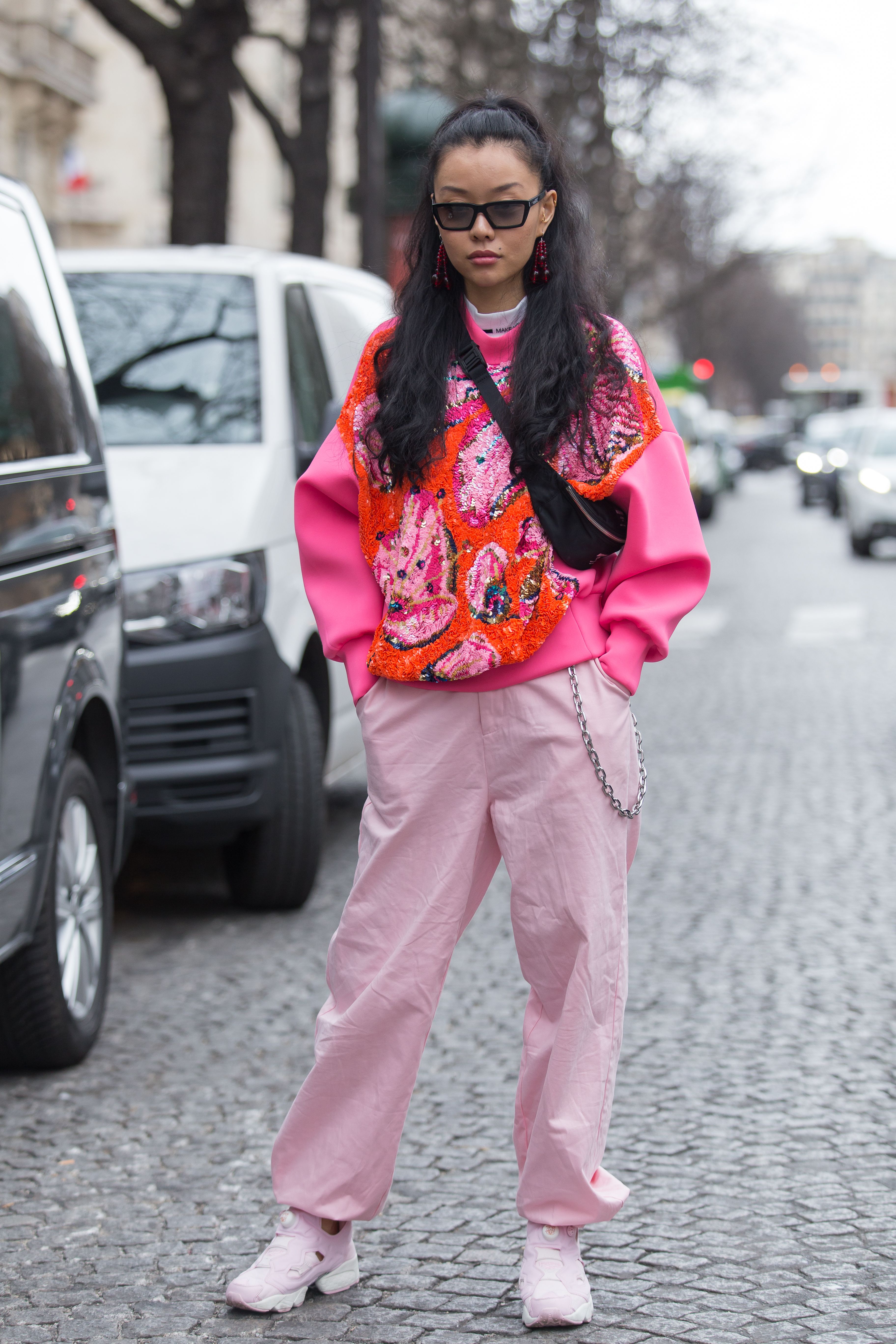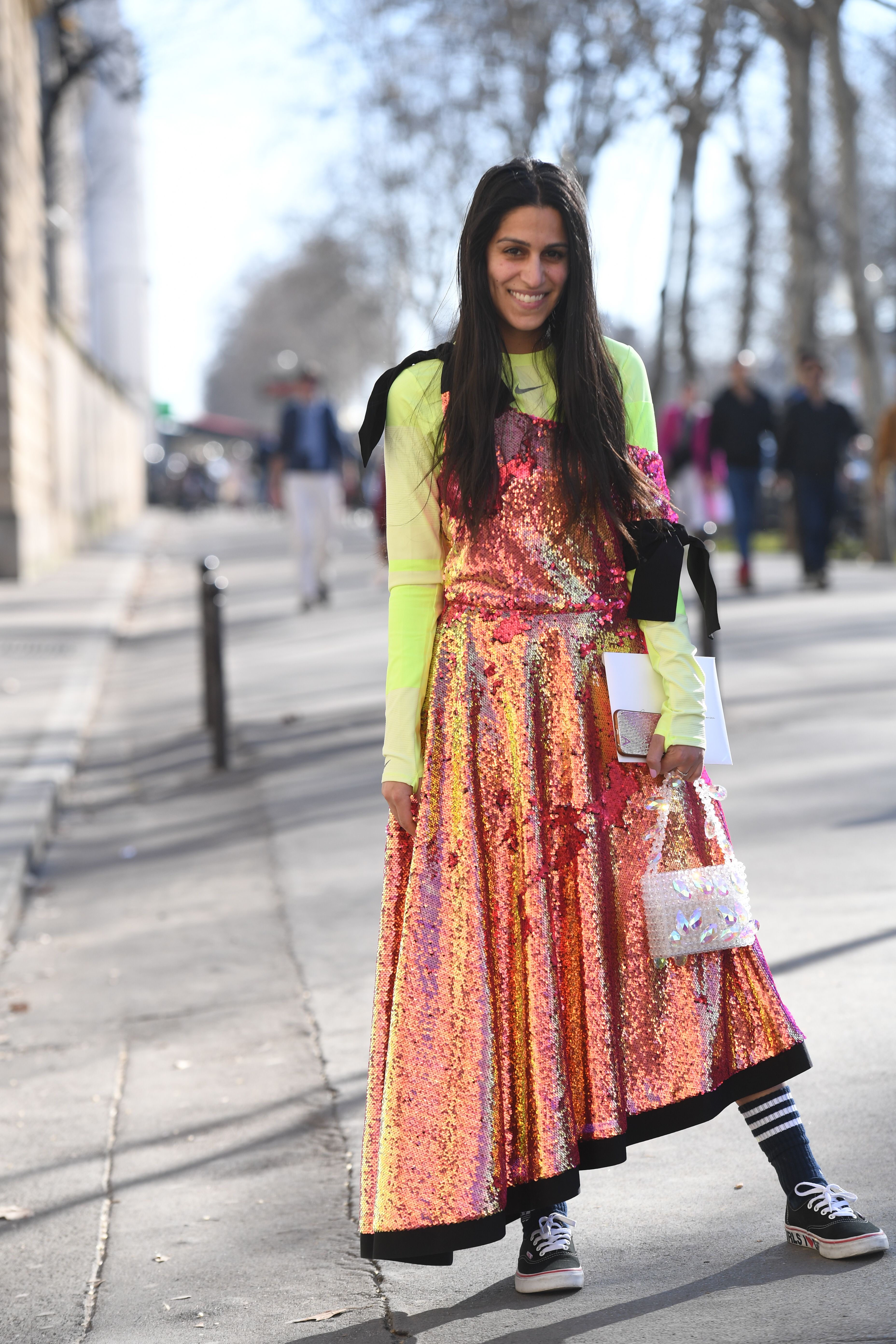 These Paris Fashion Week guests have embracing the wilder side of fashion—bold patterns, flashy sequins, statement sunglasses and neon galore. Unlike the street style in Milan, London and New York, there are a lot few puffer coats this time around. More guests are showing their skin out in the Parisian streets, and we’re here for it.