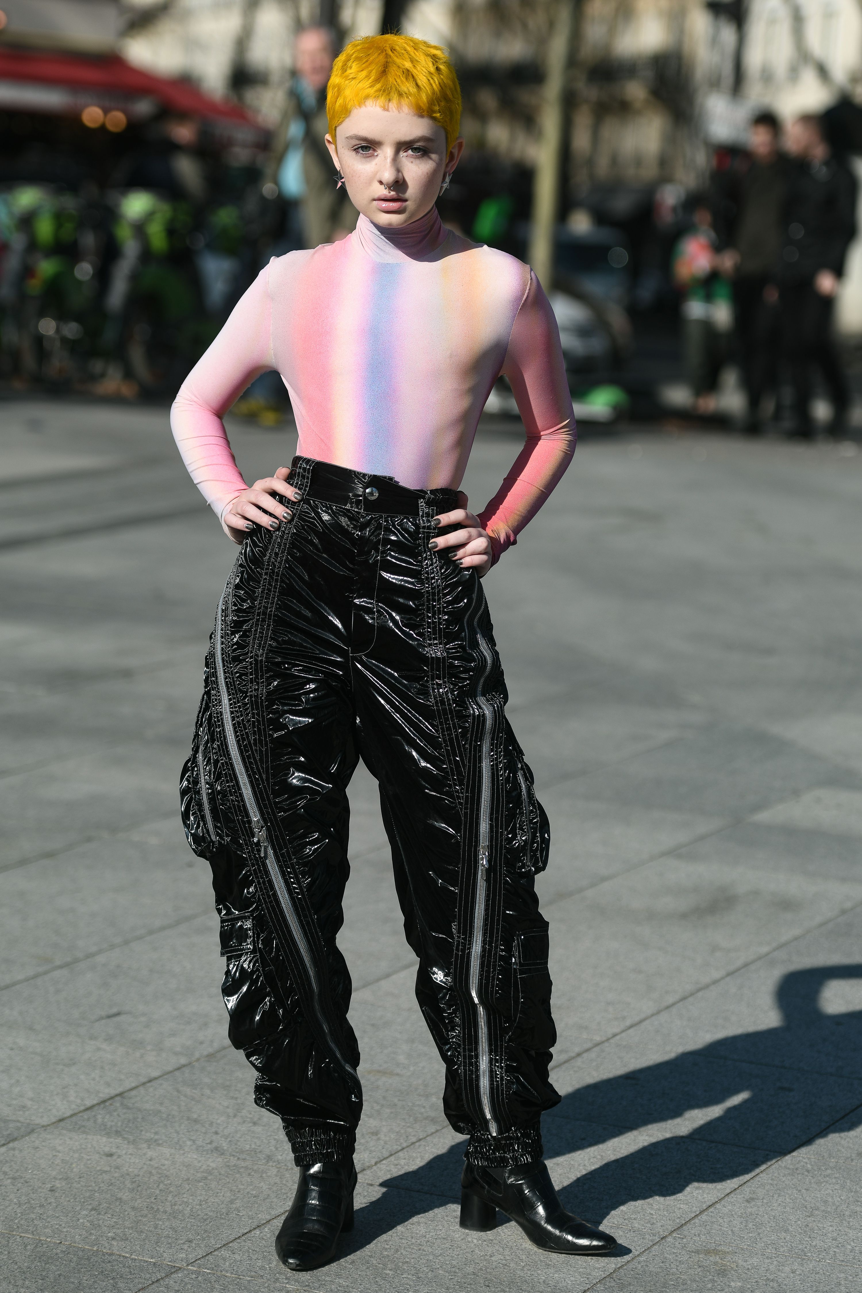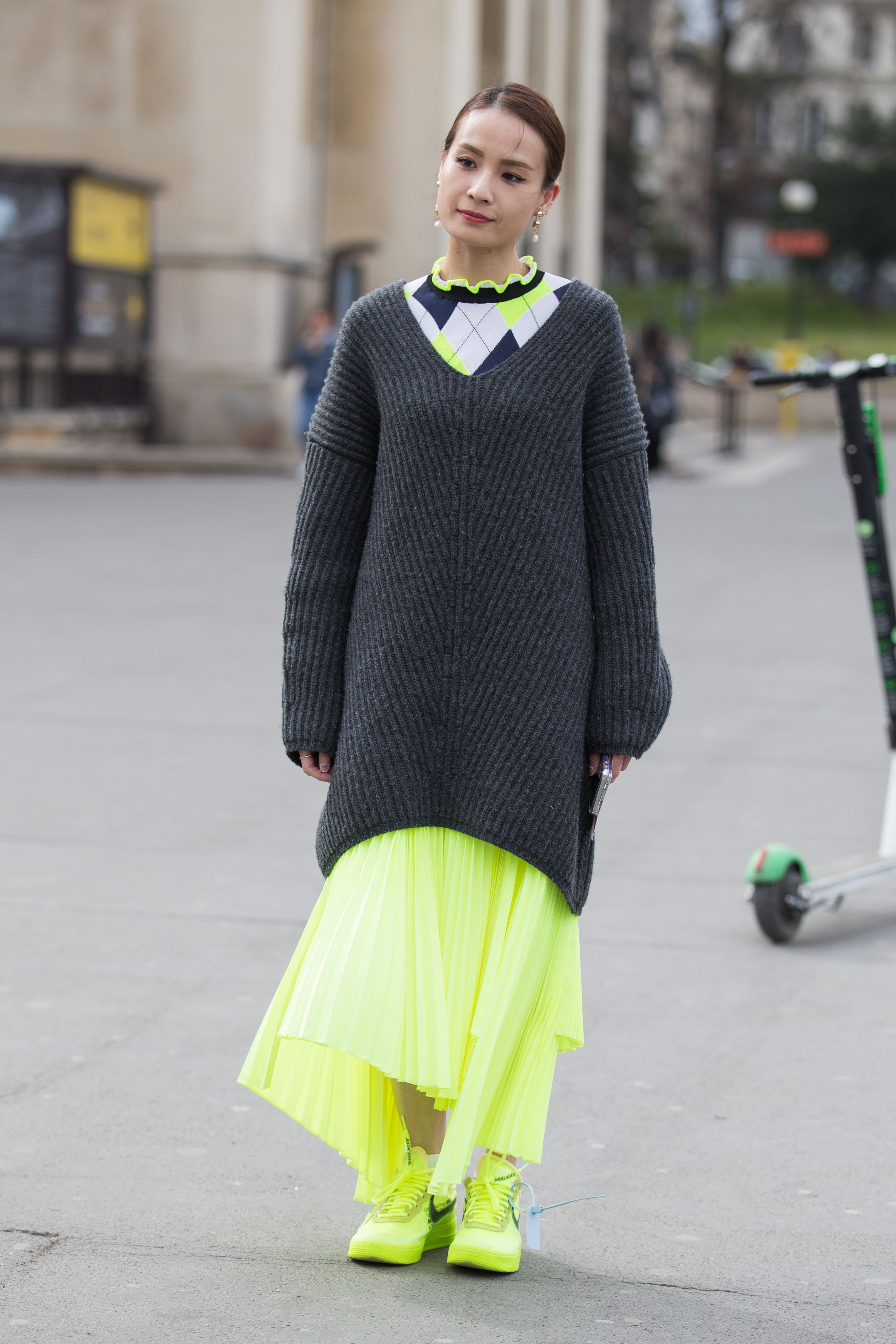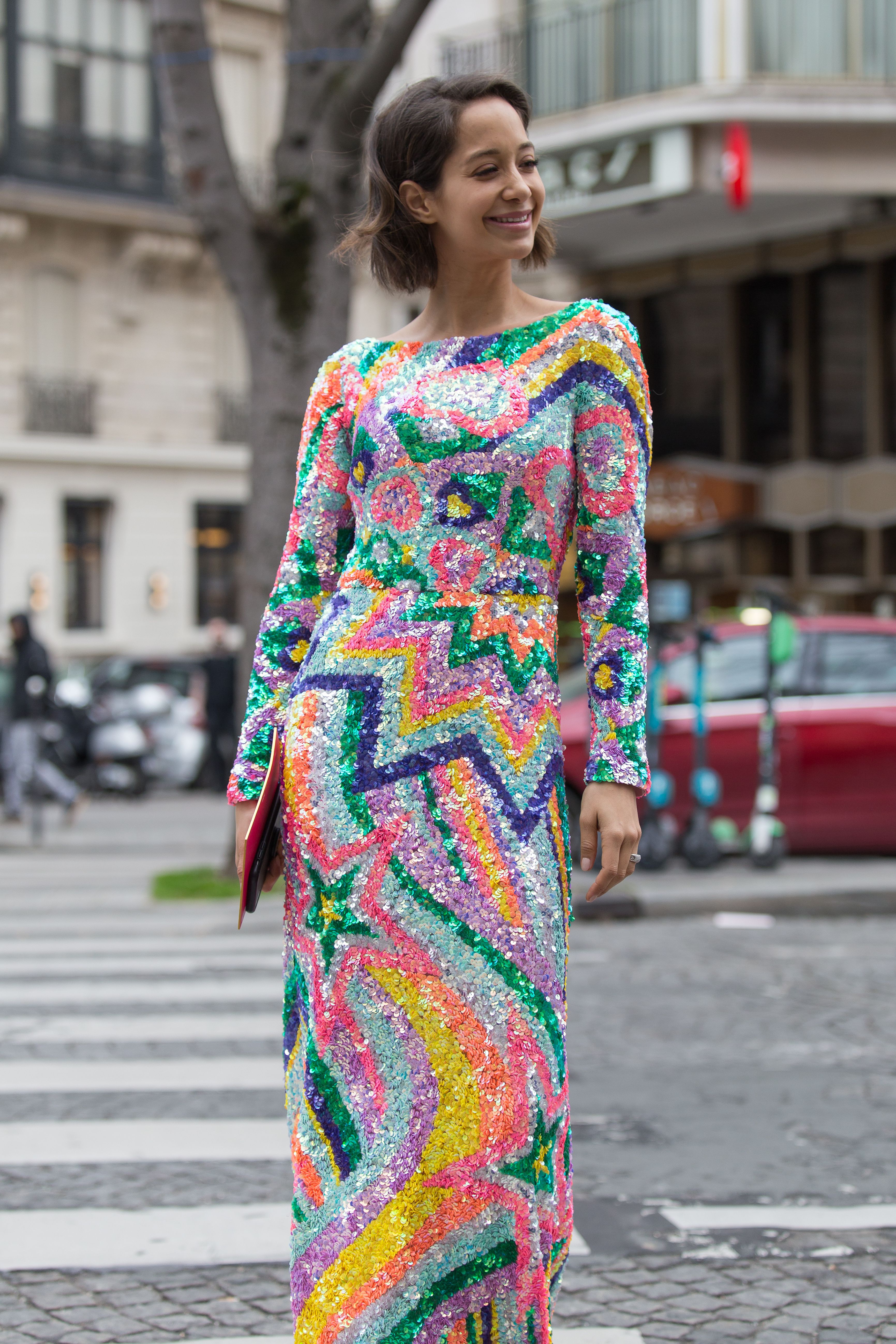 These Paris Fashion Week guests have embracing the wilder side of fashion—bold patterns, flashy sequins, statement sunglasses and neon galore. Unlike the street style in Milan, London and New York, there are a lot few puffer coats this time around. More guests are showing their skin out in the Parisian streets, and we’re here for it.