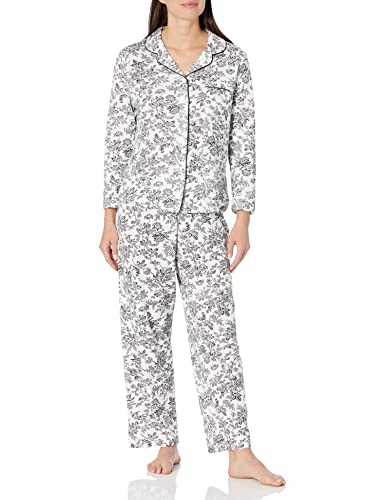 This chic, floral motif two-piece jammie set comes in a vast array of different hues and patterns to give your nighttime attire a fashionable twist. Available in extended sizes from petite small to 3X plus, this luxe set is designed with brushed interlock fabric for a warm but lightweight feel.