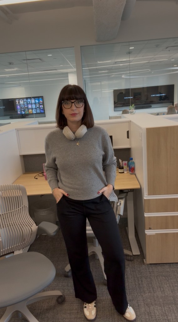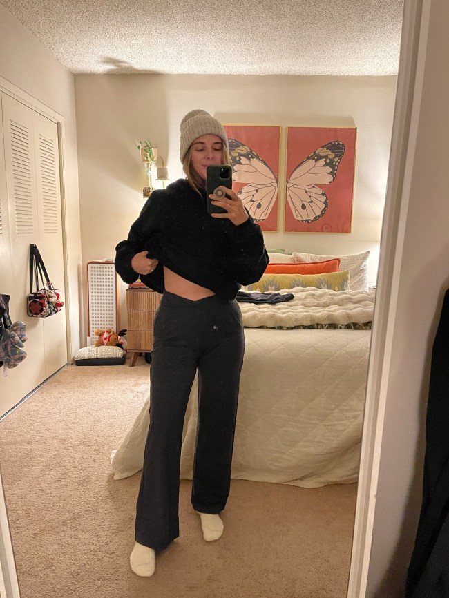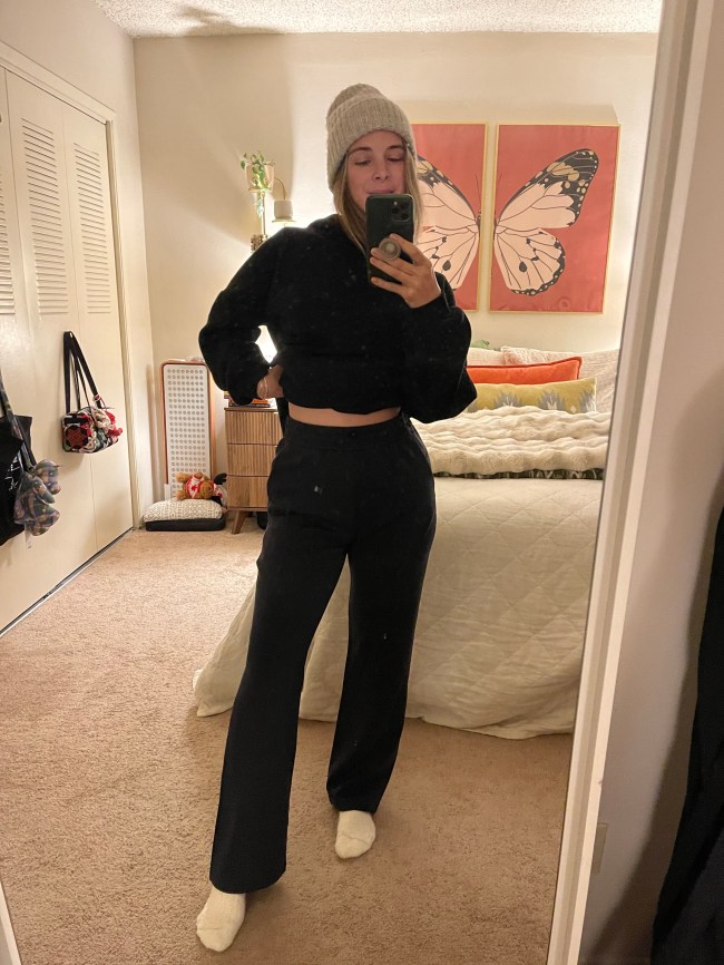And after putting these pants to the test at the office, I get why the reviews are all so outstanding: These pants are elite. The fabric is soft and stretchy, yet snug in all the right places, and the wide-leg design is just wide enough to give it that Cool Girl silhouette I’ve been seeing all over my social feeds. They’re high waist with seams that seem to almost contour my belly and hips, which I appreciate as someone who is one-year postpartum and self-conscious about those features.