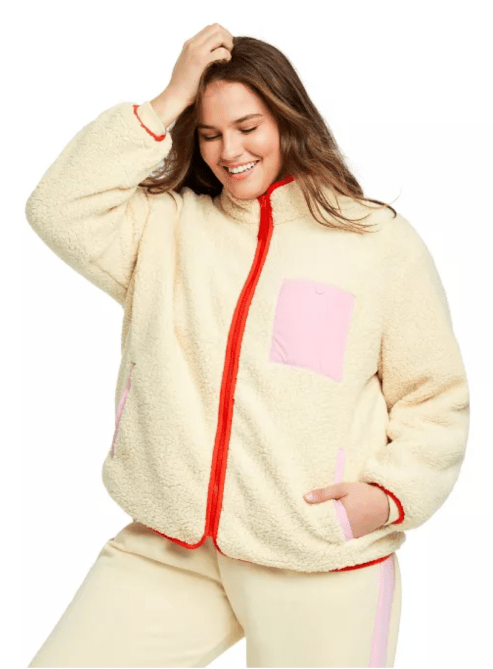 The vibrant trim on this cozy fleece is the perfect pop of color for a neutral set. Complete the outfit with the matching sweatpants.