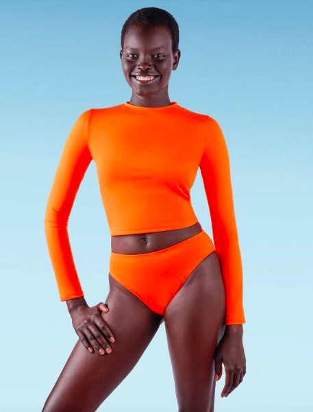 Here’s another double-duty swim style that can double as a going-out top. The skin on the chest is some of the thinnest skin on our bodies, so covering it up under the sun is always a good idea.