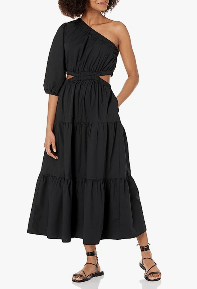 There’s something inherently sexy about a one-shoulder dress . It’s flirty without being too obvious. The side cut-outs on this black number from The Drop solidify this as a killer date night look. It’s available in six colors and sizes XXS-5X.