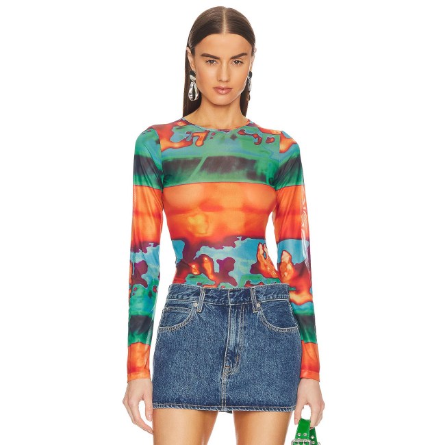The good news about this top style is that it’s versatile while packing a punch and can easily be layered over both tiny bras and full coverage tank tops. You can pair it with casual jeans for a daytime look, then follow Swift’s lead once the sun goes down, using the piece to spice up a black mini skirt. You might even dare yourself to mix prints or layer one under a sleeveless dress to make it work for the winter. Either way, a printed, see-through shirt is a statement piece, and there’s no better time to add one to your wardrobe than now.