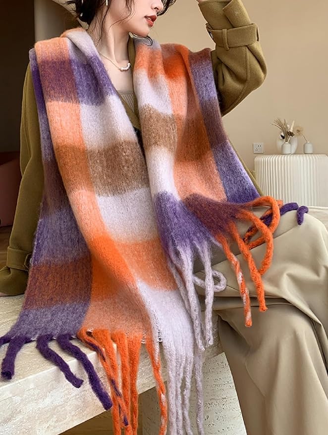 Purple and orange might not be a color combo you reach for when pulling together your outfits, but in scarf form , they just work — and add some flair.