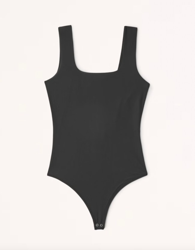 Abercrombie’s bodysuits are some of its most popular items, so the fact that this seamless tank design is still in stock is beyond me. The slim-fitting style is made from a soft matte seamless fabric, and features a square neckline and two-snap bottom closure for easy removal. All shades—black, green, dark brown and grey—are currently on sale.