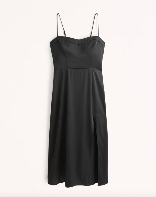 This midi dress is one of the items I’m adding to my own personal cart. It’s made from a shiny satin fabric, has adjustable straps, a thigh-high slit detail (love) and a sweetheart neckline. While a little black dress is a classic wardrobe staple, I was immediately drawn to the vibrant green color.