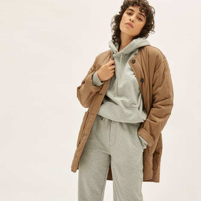 Think of this jacket as the updated version of those olive utility jackets that you wore back in 2015. The flattering cinched waistline adds some shape to this otherwise relaxed silhouette.