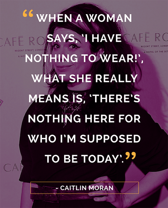 87. “When a woman says, ‘I have nothing to wear!’, what she really means is, ‘There’s nothing here for who I’m supposed to be today.’”– Caitlin Moran