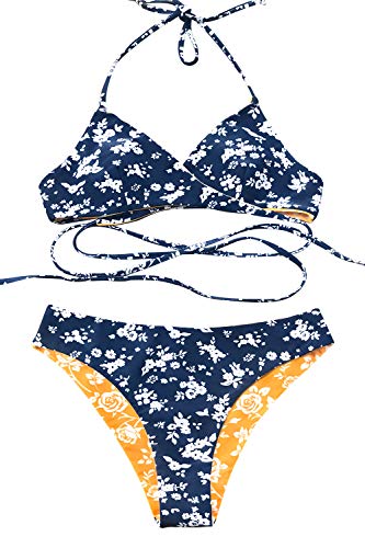 This swimsuit is really the best of both worlds : a sweet, feminine floral with a sexy, strappy silhouette. Plus, it’s reversible!