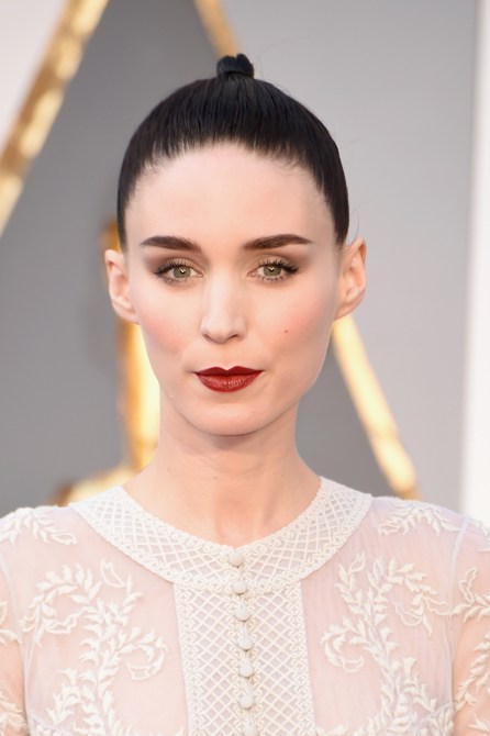 Rooney, Rooney, Rooney—the actress stuck to her high-contrast guns with a brick red lip and a severe, itty-bitty bun.